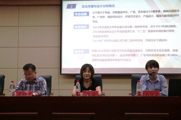 然后,刘怡泓副院长为大家做东方学院和文设分院办学情况介绍。她首先介绍了东方学院历史发展、办学特色。其次,向17级学生重点展示了近年来我分院各专业取得的成果。最后,她希望全体新生戒骄戒躁,继往开来,为分院再创佳绩。