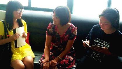 图 2人文与艺术分院院长陆芸(中)接受采访