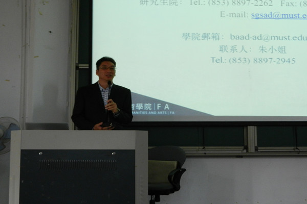 11月28日上午,澳门科技大学副校长兼研究生院院长庞川教授一行莅临我院,在2教101教室进行了一场精彩的研究生课程宣讲会,来自人文与艺术分院及其他分院的200余名师生参加了此次宣讲会。