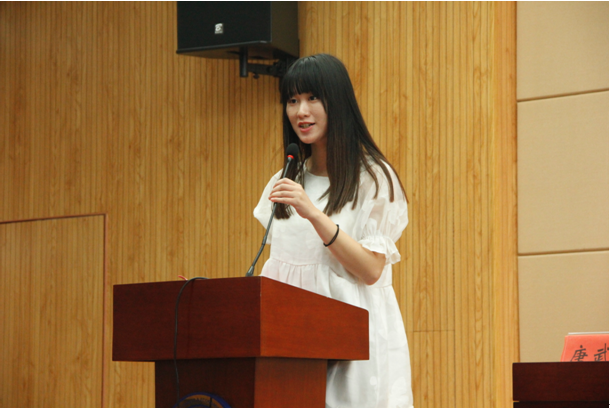 学生代表12文学徐若翩表达了对新同学的欢迎和期望,为他们如何走好大学路提出了些许建议,希望各位新生能够度过充实并有意义的大学生活。