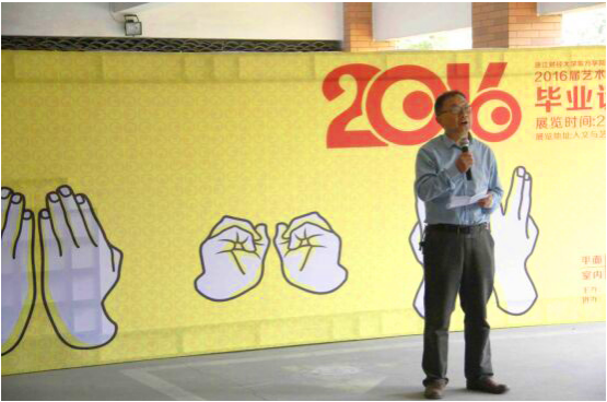 人文与艺术分院2016届艺术设计专业毕业生作品展---“玩瞳”于4月12日下午1点在2号教学楼举行了隆重的开幕仪式,浙江财经大学东方学院院长沃健、人文与艺术分院院长陆芸、分院老师和来自不同专业的各位学生参加了本次开幕式。