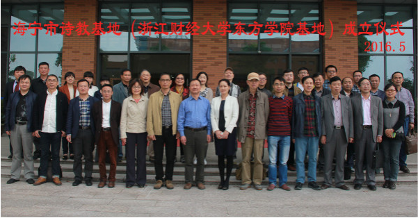5月10日,海宁市诗教基地(浙江财经大学东方学院基地)授牌仪式暨东方学院海宁市文联实践教学基地签约仪式在学术中心第一报告厅举行。学院院长沃健,海宁市文联党组书记、主席王珏,海宁市文联副主席孙建跃,中华诗词学会理事、浙江省诗词与楹联学会常务理事兼诗教部部长沈利斌,中国诗歌学会理事、浙江省作家协会评论委员会副主任王学海,浙江省作家协会诗歌委员会副主任伊甸,嘉兴市作家协会副主席张敏华,嘉兴市诗词楹联学会副会长、海宁市诗词学会会长傅震宇及各位诗人,我院人文与艺术分院院长陆芸、中文系全体教师和学生参加了此次活动。
