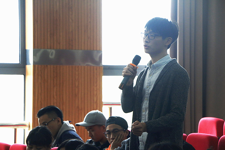演讲完毕后,现场的同学们非常积极地和这位来自法国的校长交流。14级贾银银同学对校长“两条腿理论”中关于创意这一方面提出了自己的困惑,FELICES校长进行了详细地解答。