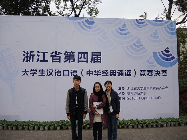本次大赛由浙江省语言文字工作委员会办公室、浙江省大学生科技竞赛委员会主办,杭州师范大学承办,旨在进一步弘扬中华优秀传统文化,提升大学生汉语口语表达能力,引领大学生阅读中华经典诗文。大赛于2016年5月份举办初赛,共有全省高校推送的500多名选手代表各校参赛,组委会经过严格评选,于7月份公布决赛名单,我院陈昕和曹海凌两位同学入选。