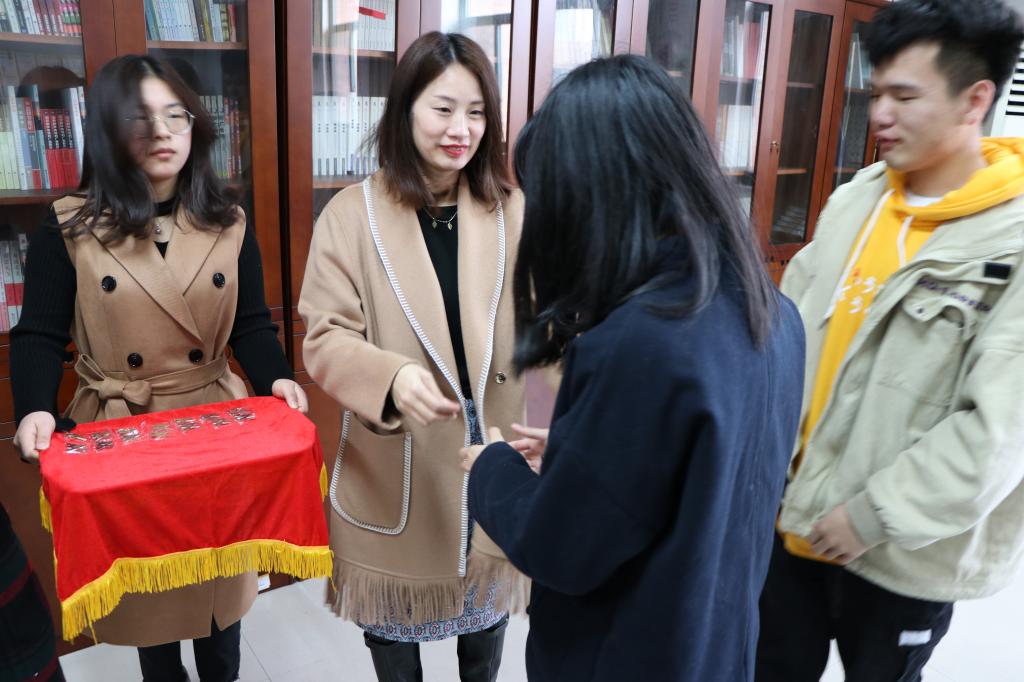 随后,吴欢超老师和郭振伟老师亲手为每一位新同学们佩戴分院院徽。