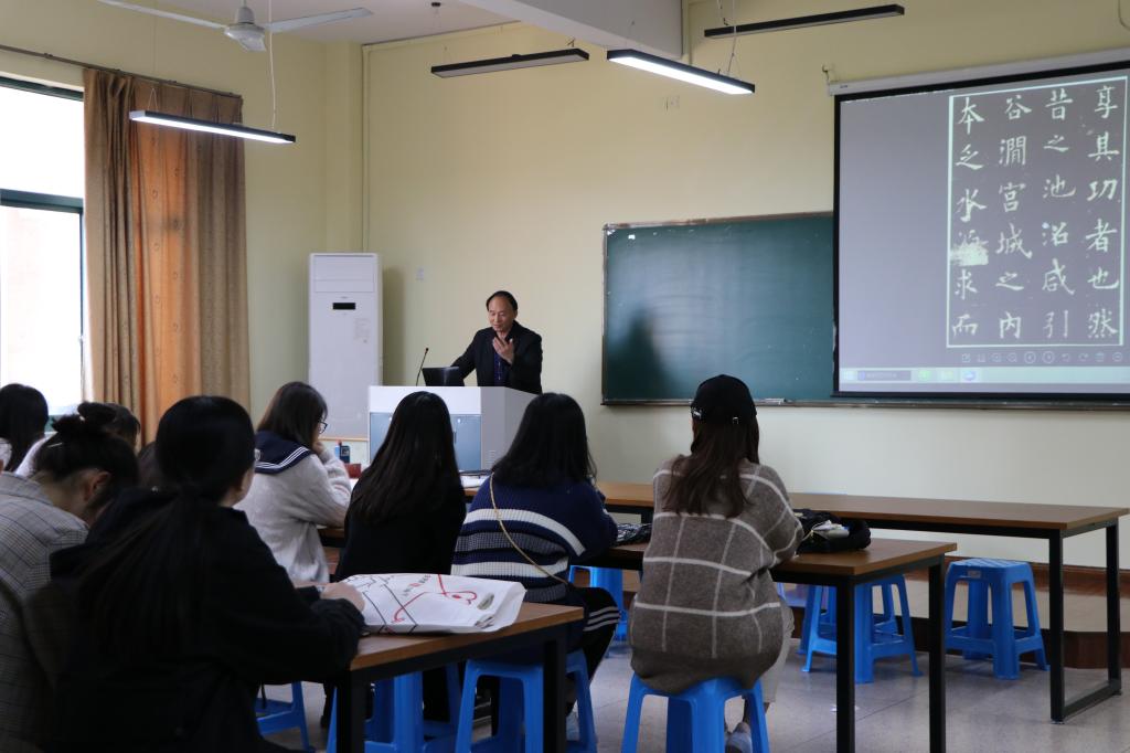 3月15日下午,著名海宁籍书法家陈浩先生应邀来我校开授本学期《大学书法基础》课程。