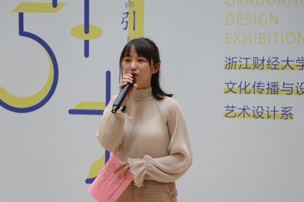 分院院长陆芸致开幕辞,她首先对莅临展览现场嘉宾致谢,并回顾了2019届毕业生学科竞赛、创新创业、学生科研等方面的优异成绩。同时,她解释了本次毕业展的主题“艺心引力”的寓意:分院里的每一位教师就像一颗颗行星,是卫星和恒星之间的桥梁。他们拥有同样的艺术向心力,同时又用人格魅力和专业水平吸引着拥有不同艺术追求的学生们围绕在他们周围,带领学生去探索艺术运行的规律。
