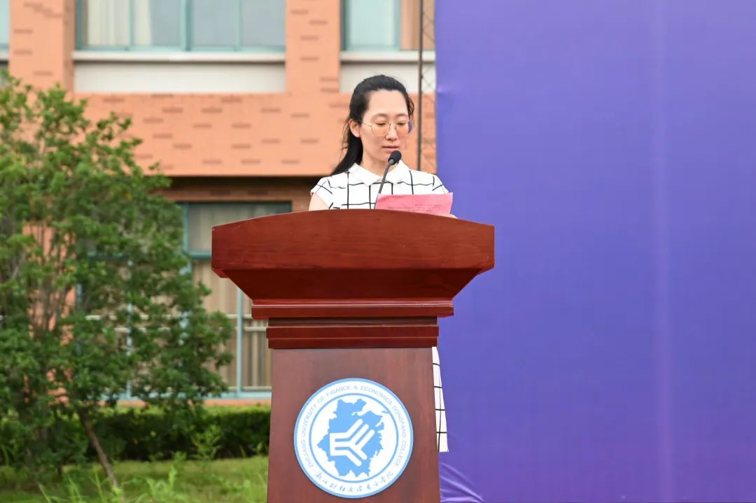 产品设计专业李孙霞老师作为教师代表上台发言。她希望毕业生们无论何时都可以拥有一颗善良、真诚的心,学会包容,学会理解,学会感恩,在未来的生活中可以收获更多。