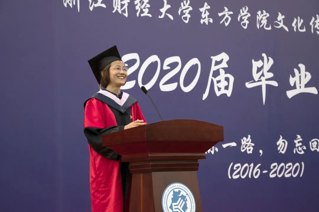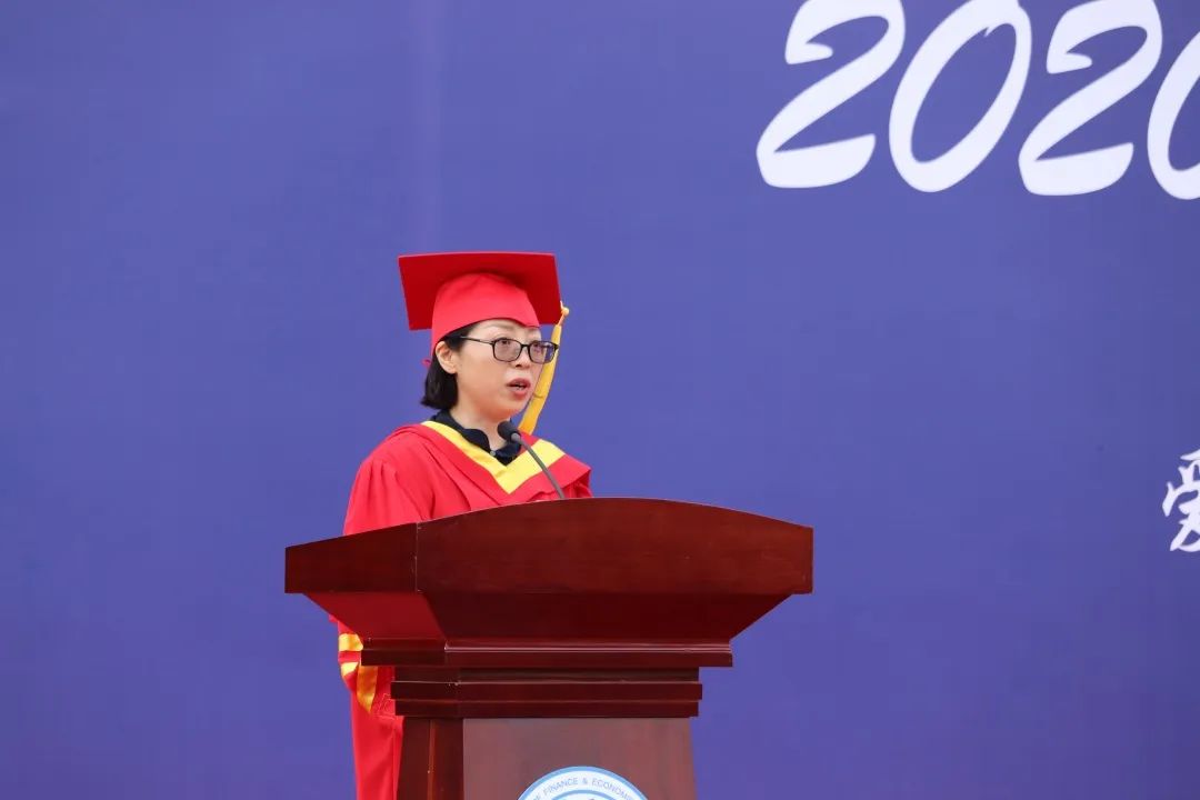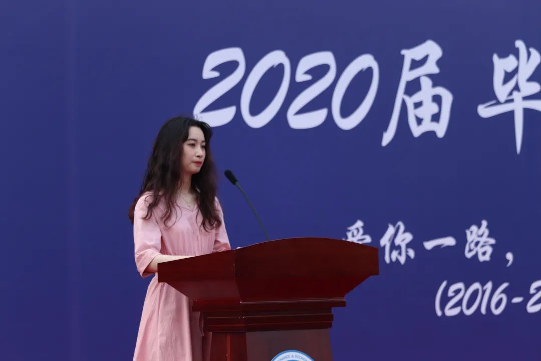 毕业生带班辅导员虞雅伦老师代表学院向大家致答谢辞。作为带班辅导员,虞雅伦老师看着16级的毕业生一步步走向成熟,他们在各个场合的优异表现,都被她看在了眼里。“聚是一团烈火,散是满天繁星”,她相信优秀的他们在工作后也能散发自己的光彩。