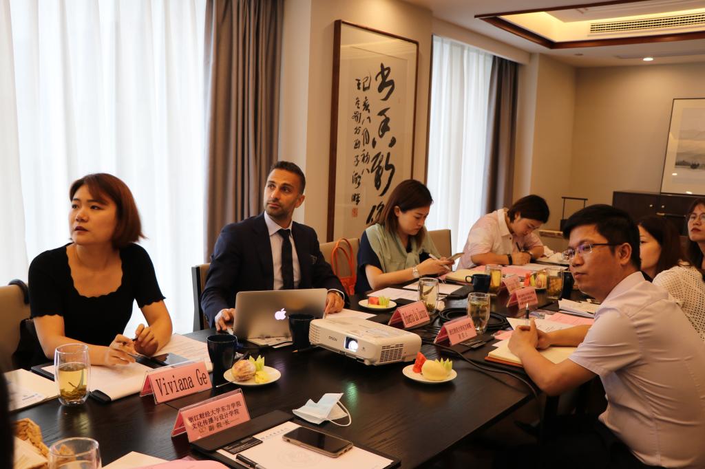 7月6日,我院与意大利马兰戈尼设计学院于杭州新侨饭店就合作展开洽谈会。与会的代表有马兰戈尼设计学院亚太、中国大陆区市场兼销售总监Roberto La Iacona、中国大陆区业务发展经理Grace Shi、中国大陆区录取招生主管Viviana Ge,东方学院副院长黄志岭、科技管理部部长兼国际合作交流中心主任倪玲霖、科技管理部国际交流主管陈珊珊、304am永利集团在线平台书记陈明亮、副院长刘怡泓、副院长胡悦及对外合作秘书韩斯斯。