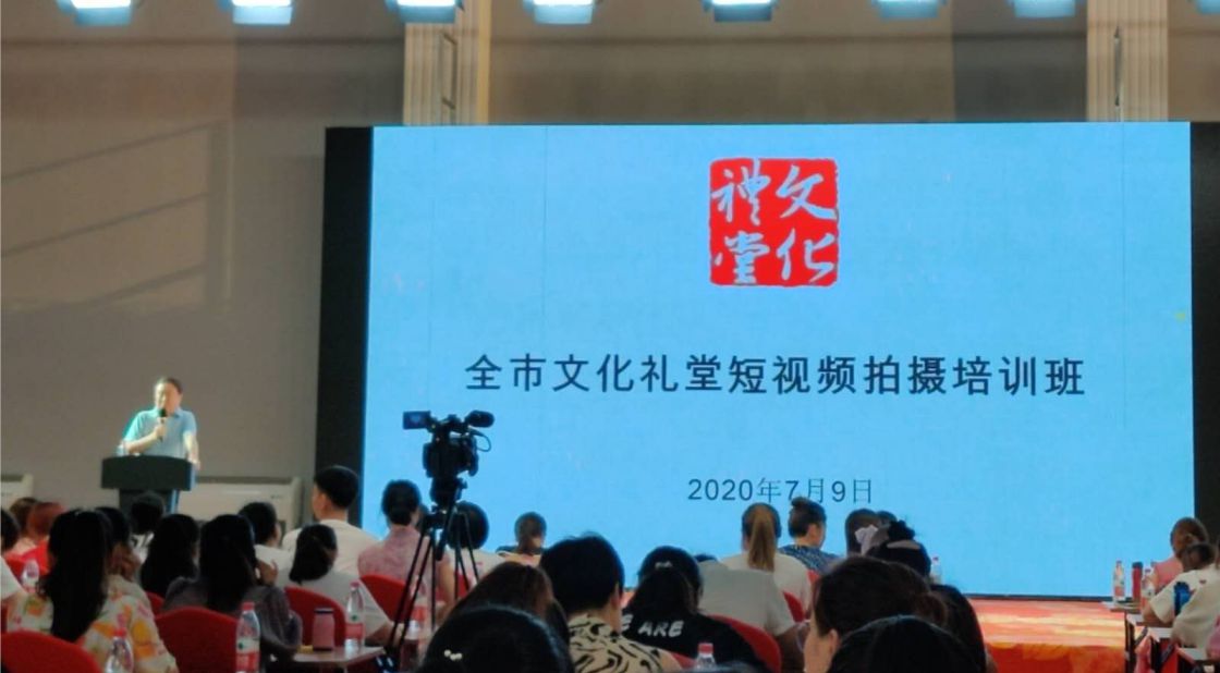 当日上午,广告系老师们首先旁听了在中心举行的“全市文化礼堂短视频拍摄培训班”。会上,中国电视剧制作产业协会会长、短视频内容工作委员会主任,曾执导拍摄《孝庄秘史》等数十部热门影视剧的国家一级导演尤小刚导演做了《短视频的本质和发展趋势》专题讲座。