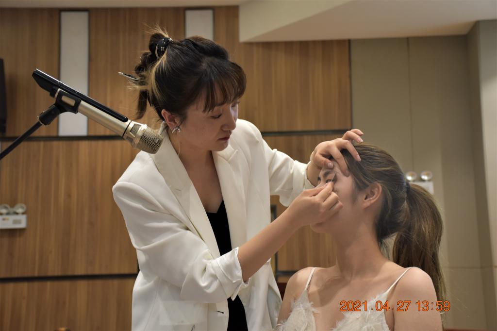 除了理论讲解,阿珂老师还在现场给同学们带来了“创意新娘”的妆容,让大家对于妆容设计有了更深刻的认知与把握。