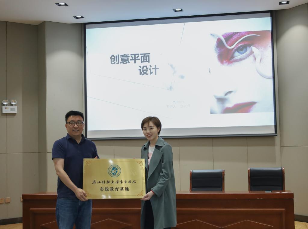 2021年4月27日下午13:30,阿珂老师在J5–101开展“创意平面写真造型设计”讲座。讲座正式开始前,胡悦副院长为杭州摩可文化创意有限公司授牌,标志着摩可文化正式成为我院实践教育基地之一。