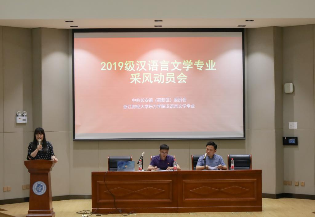 5月7日下午,2019级汉语言文学专业采风动员大会在第三教学楼101教室召开。出席本次大会的领导和嘉宾有浙江财经大学东方学院党委副书记林香娥、海宁市长安镇(高新区)人民政府甘朝标委员及各村(社区)联络员。指导教师高扬、蔡敏敏、潮莉、胡波以及2019级汉语言文学全体学生参加了动员大会。