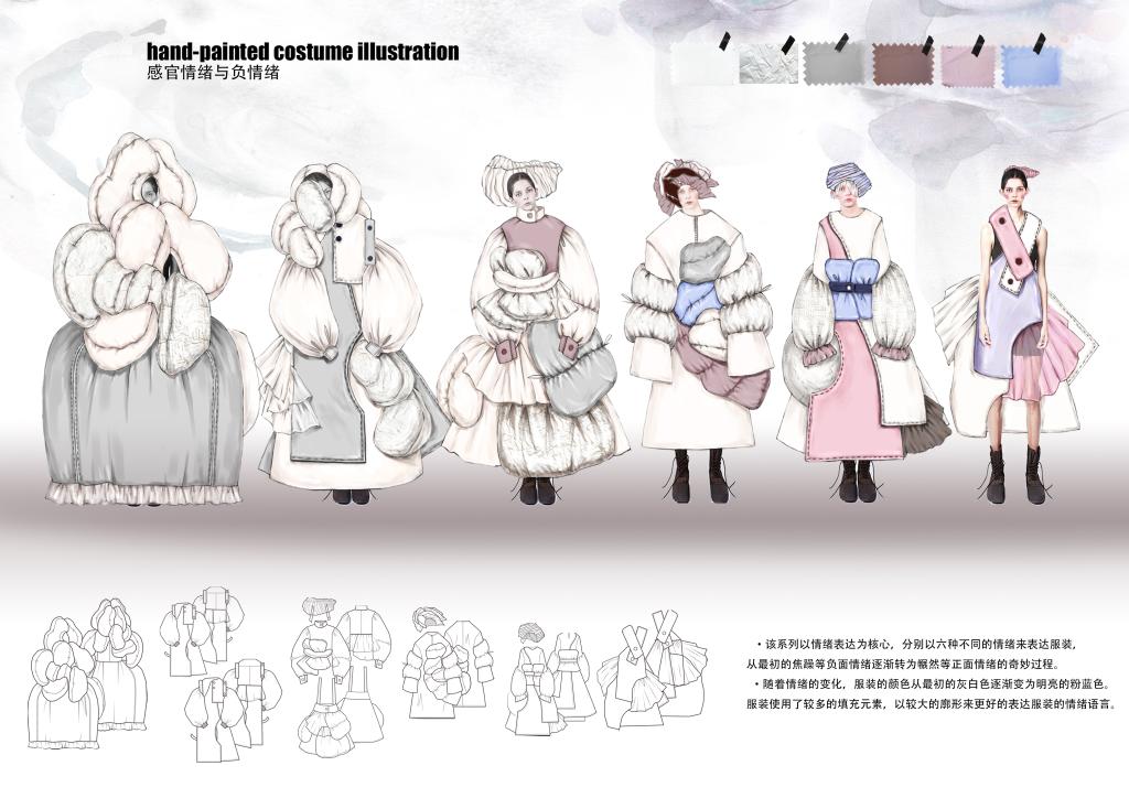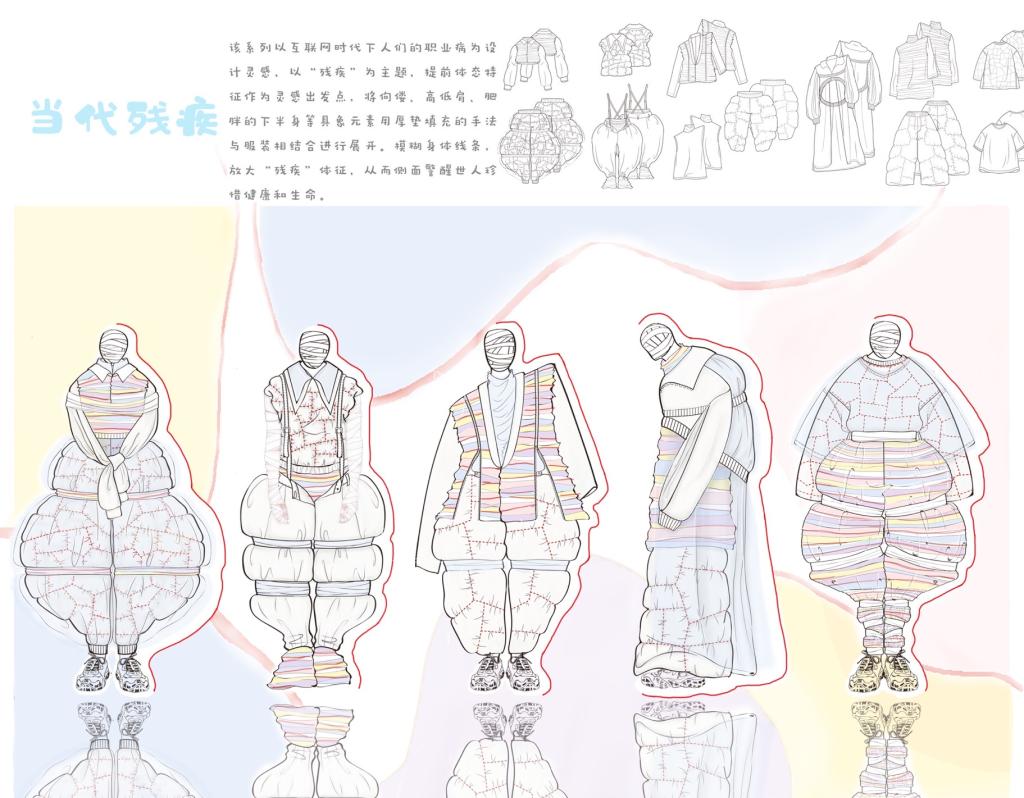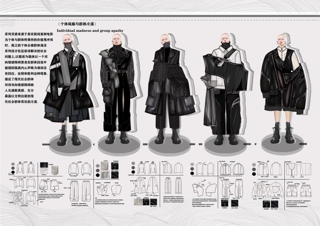 亮相本次时装周的作品既关注当下流行思潮与时代热点的运用,更重视设计新思维、新理念、新潮流及灵感的原创。这些天马行空的作品很好的表达了同学们对美好生活的期盼和对服装的不同感悟与理解。