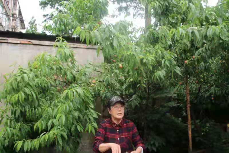 沈慕暖在自家种植的果树下,树上如她教过的学生那样硕果累累