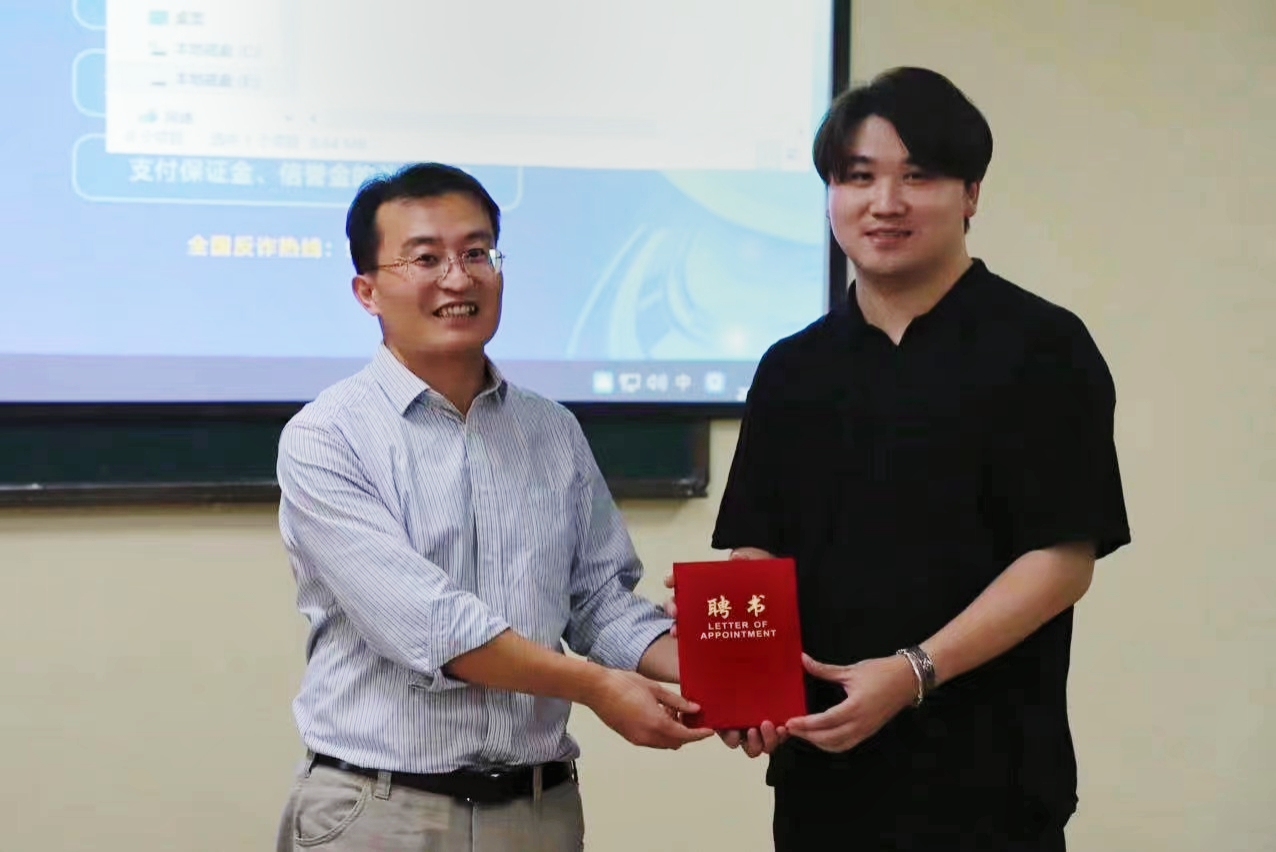 讲座期间,文设学院陈明亮书记为冯总颁发证书,聘请他成为浙江财经大学东方学院实践指导老师。