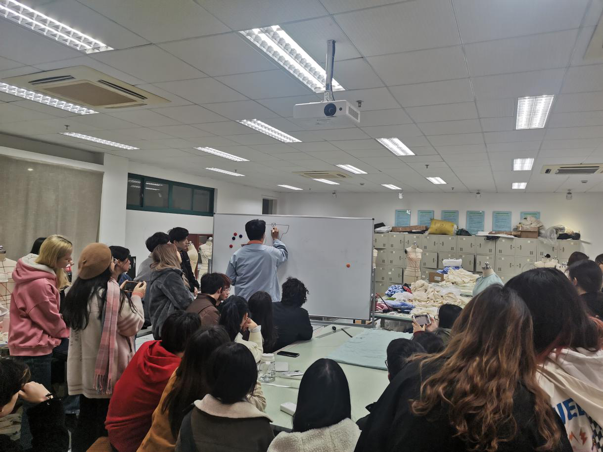 储老师展开讲座,为加强校内外交流,促进教育教学的的改革和建设,提升学生对传统中装的了解和设计更深层次的理解,更对我院对教学改革和学科建设的有益探索。