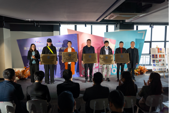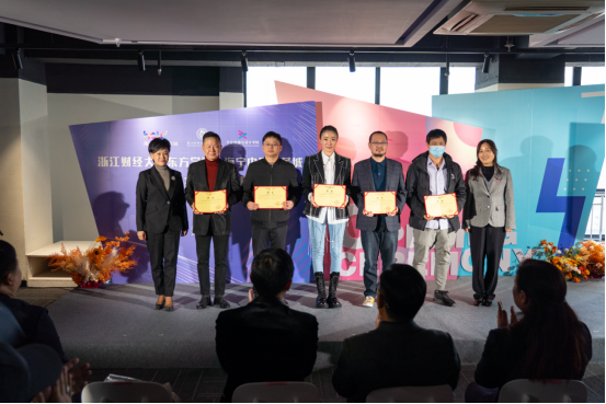 揭牌及启动仪式后,浙江财经大学东方学院党委书记申屠莉、海宁市时尚产业中心副主任戴璐上台为海宁中国皮革城经营管理有限公司总经理朱忠平、海宁市服装协会设计师联合会秘书长任敏、海宁市皮革原料商会会长梁炯、海宁中国皮革城网络科技有限公司总经理姚政宇、海宁市创思奇服饰有限公司总经理吴强礼等时尚产业学院聘任业师颁发聘书。浙江财经大学东方学院党委副书记林香娥、副院长蒋钰明为海宁同兴智慧园区管理有限公司、海宁市服装协会、海宁市服装协会设计师联合会、海宁市皮革原料商会、海宁市创思奇服饰有限公司等5家单位授牌“浙江财经大学东方学院实践教育基地”。