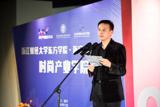 海宁市人民政府副市长杨文华在仪式上发表讲话。他指出,时尚产业学院的揭牌,是海宁时尚产业推动产教融合、加快产业创新方面的又一项重要成果。在积极推进传统产业向时尚产业转型升级的过程中,海宁市政府明确了在“十四五”期间将时尚产业打造为千亿级别产业的决心,为此专门成立了时尚产业中心,统领和统筹全市的时尚产业发展。浙江财经大学东方学院作为海宁本土高校,自建校以来便积极融入海宁的产业发展,不断创新办学模式和运营机制。时尚产业学院的成立,将进一步整合地方和学校的优质资源,推动人才和产业的深度融合,激发市场主体的创新动力,为海宁时尚产业健康可持续发展提供强有力的支撑。