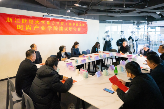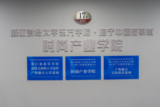 2021年11月,总面积约1000平方米的浙江财经大学东方学院海宁中国皮革城产教融合实践教育基地于海宁皮革城风尚设计中心大厦17楼正式建成,为浙江财经大学东方学院与海宁中国皮革城的产学合作实践提供了重要的产教协同育人空间。在此基础上,浙江财经大学东方学院和海宁中国皮革城决定将原海宁风尚学院升级为时尚产业学院,深化产学研对接。