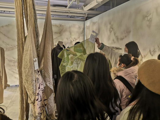 在布料图书馆,同学们感受上千种面材料的不同肌理与变化,了解创意材料;考察四季青面料市场,让同学们掌握时下服装面料流行趋势;赴中国丝绸博物馆,让同学们重温服装历史和中西服饰文化特点。从古代服装服饰,到养蚕缫丝织布,再到中西近代时装设计案例和“衣尚自然”的可持续服装设计,部分同学深有感触,服装面料和历史知识的学习了解对服装设计思考有许多启发,今后将会进行更深入的了解和研究。