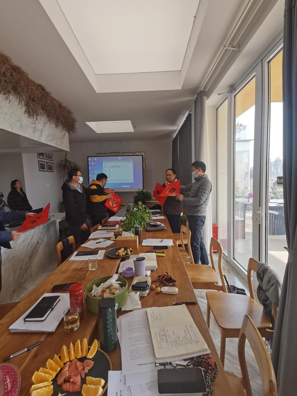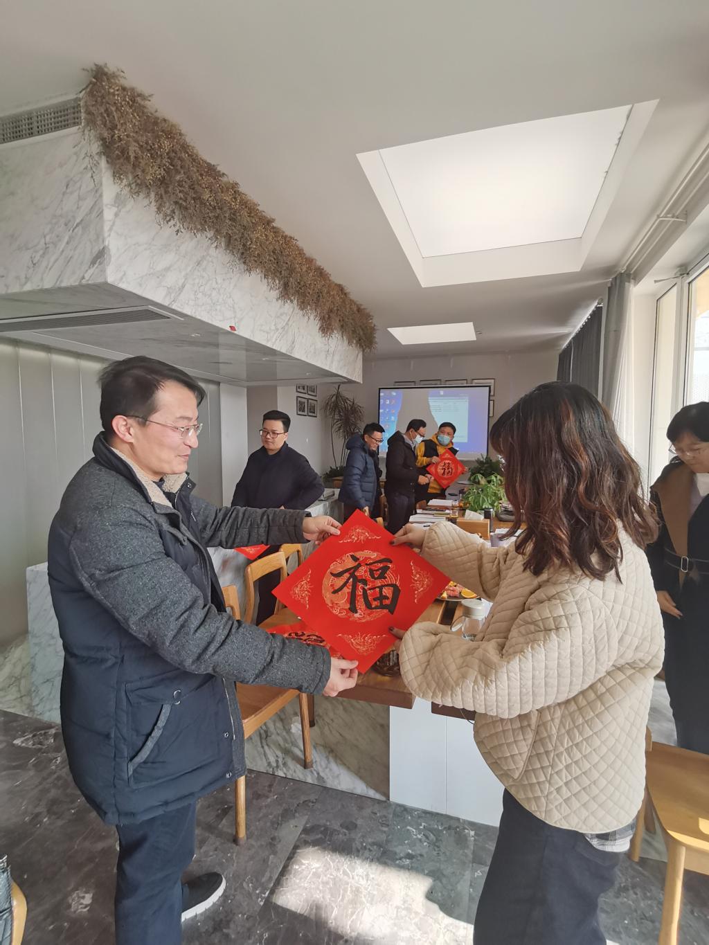 座谈会上,大家共同回顾2021年发生的点滴,对2022年许下期望。每个专业出代表,由陈明亮书记送上“福”字。