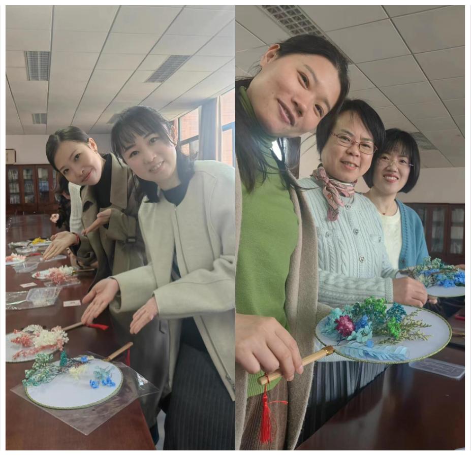 文设分工会为庆祝2023年“三八”妇女节,展现我院女职工的柔美和韵味,于3月7日下午顺利开展干花团扇手工专场活动。