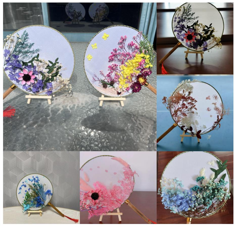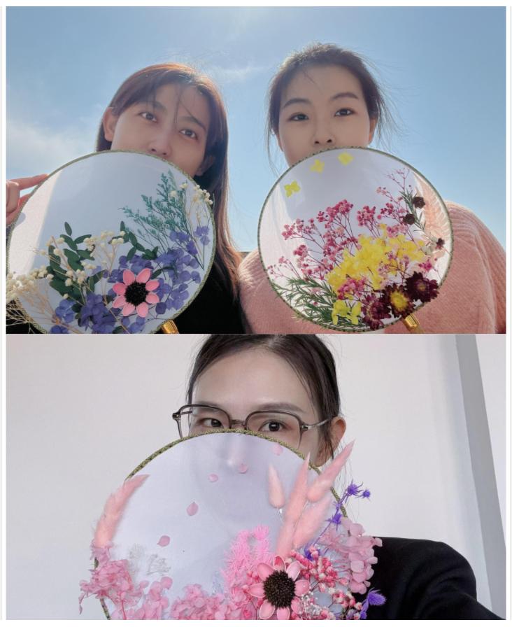 活动前,分工会提前准备好干花团扇的制作材料,通过学院网站提前公布活动信息,并于学院群里号召大家积极参加现场制作,为活动预热。团扇,又称宫扇、纨扇,是中国汉族传统工艺品及艺术品。因其圆圆的造型,有着团圆友善、吉祥如意之意,也是中华民族传承的扇文化的重要组成部分。干花团扇制作是将干花在团扇上摆出喜欢的造型,展现制作者独有的审美和匠心,别具一番意境。