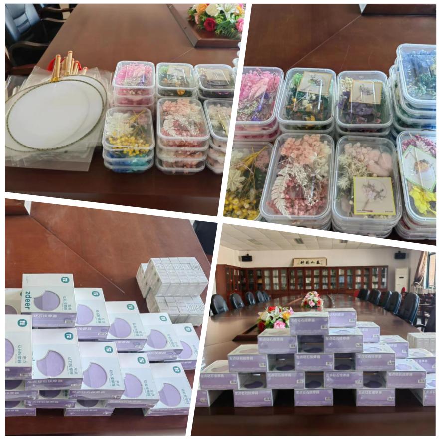 我院女职工对干花团扇制作活动都十分支持,活动现场气氛热烈,三五成群的开始讨论、制作,一把把独一无二、精美绝伦、古色古香的干花团扇呈现在眼前。制作完毕,大家纷纷与自己的作品合影,留下这美好的一刻。活动现场,我院分工会还精心为女职工准备了砭石刮痧板,让每位老师在工作之余,可以轻松在家自我养护。