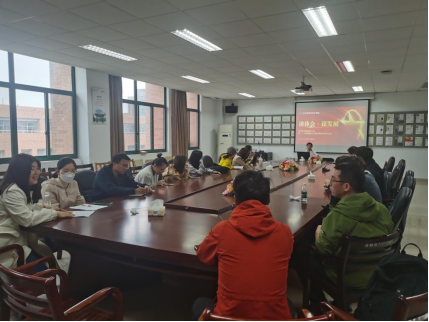4月4日,304am永利集团在线平台教工党支部全体教师J2-508会议室召开二十大精神融入文创课程建设的分享会,以“谈体会·谋发展”为核心主题,宣讲二十大,畅谈设计的未来。视觉传达系教师何畅主讲,党总支书记陈明亮主持。