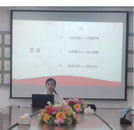 本次分享会何畅老师聚焦二十大报告的新论断及新思想,从文化自信——中国符号、乡村振兴——设计赋能、生态文明——绿色设计以及创新是第一动力这四个部分与教工党支部老师们进行了阐述与探讨。