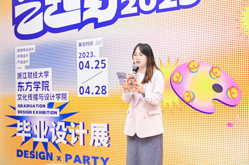 指导老师代表史雯雯在发言中对毕业生们的成果作品表示由衷的欣慰与肯定,她将此次毕业设计展比作人生的分号,一方面意味着毕业生们本科四年的专业求学完满结束,一方面也代表着新的人生阶段即将启程,希望同学们的追梦之路能够以此作注,未来可期。