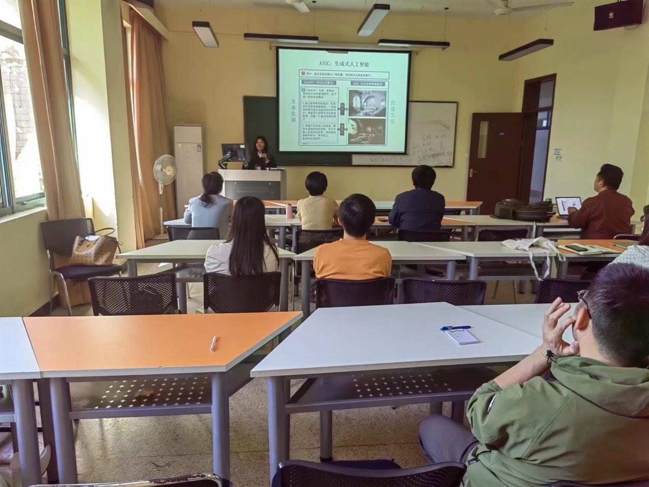 5月9日,中文系在1教306召开了主题为“AIGC时代的文学创作新范式”的学术讲座暨教学创新团队研讨会。本次讲座由信息学院宋怡君老师主讲,高扬老师主持,中文系全体教师参与听讲。