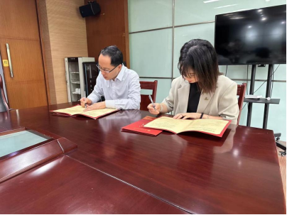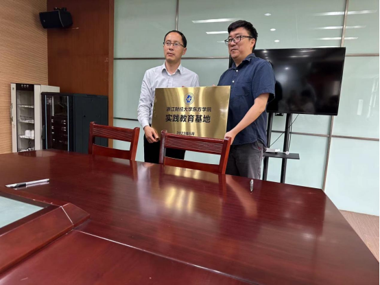 环境系系主任史雯雯与程洪福签署共建协议,文设学院副院长胡悦向拙政园管理处颁授东方学院实践教育基地铜牌。