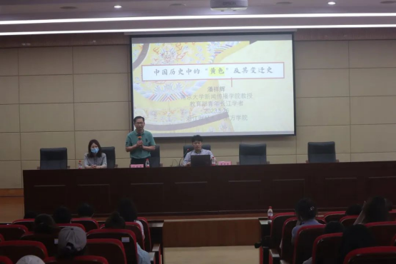 潘教授还为学生们开展了一场主题为“一个中国历史中的‘黄色’及其变迁史”的讲座。讲座从媒介之颜色维度,用大量的史料为证,点出中西方文化中黄色的不同含义,并重点论述了中国古代文明中以黄为尊的发展历史。通过讲座,潘教授向同学们揭示了文化变迁对颜色观念的重大影响。他提出,颜色本无高下,作为时代所主导的一种象征,它是政治、文化传播、哲学观念与国家共同建构的结果。