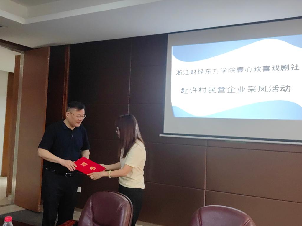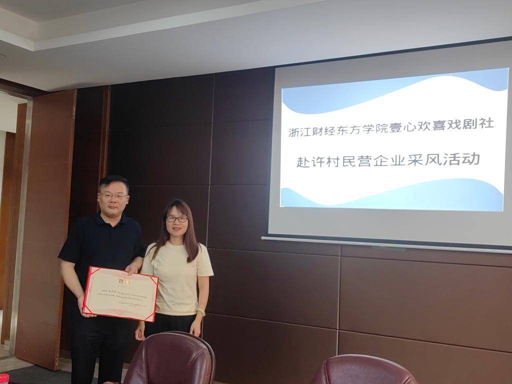 6月7日上午,由林香娥、高扬、韩斯斯三位老师共同带领戏剧社的14位学生前往许村民营企业开展采风活动。