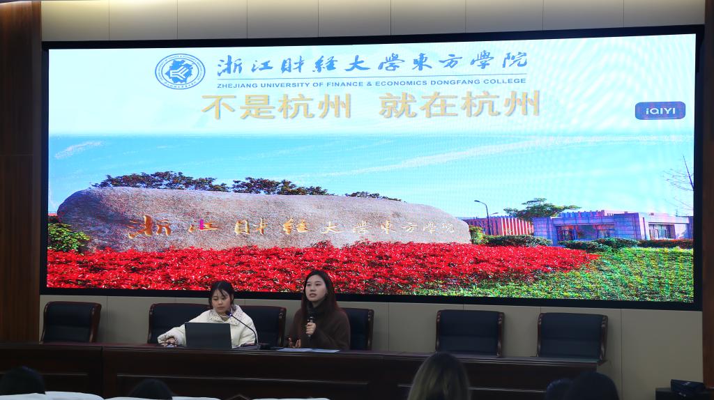 赶赴浙江省永宁中学宣讲的是以23产品2班杨梦婷为首的师生团队,21日上午,他们利用课间时间向同学们简单介绍了学校的基本情况。他们详细介绍了我院的专业优势和地理环境的优越性,并分享了学生在校的日常生活。
