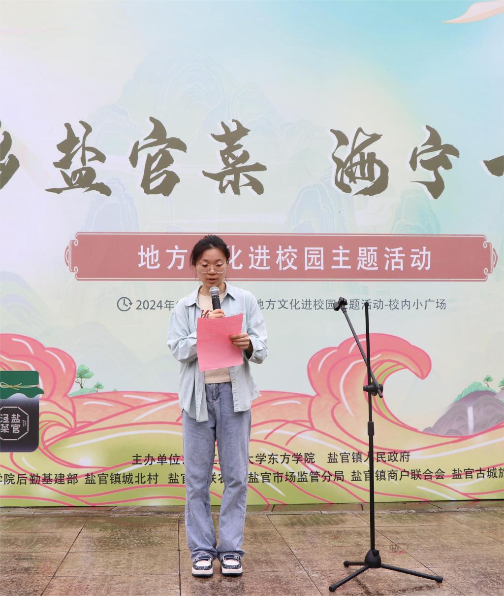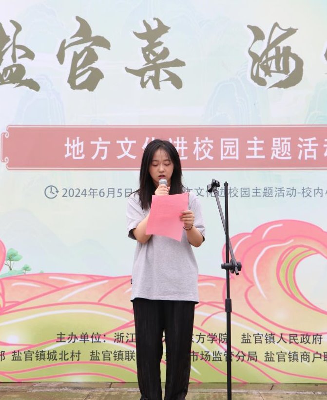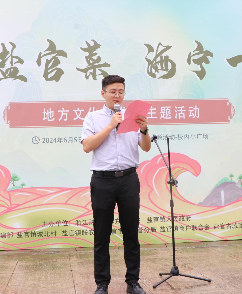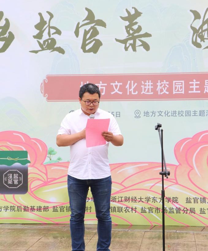 接着,东方学院党委副书记胡国庭表示,这次活动是一场意义非凡的文化盛会,更是一次促进我们学院和地方文化深度融合的宝贵机会。这次活动让学生不仅感受到盐官地方文化和知识,也培养了学生实践能力和社会责任感,令学生们品味文化建设的同时,感受社会实践的重要性,为学生们未来的创业和就业之路提供更多的帮助和支持。