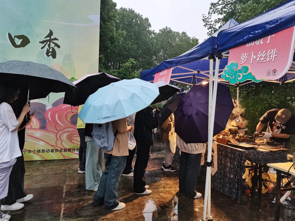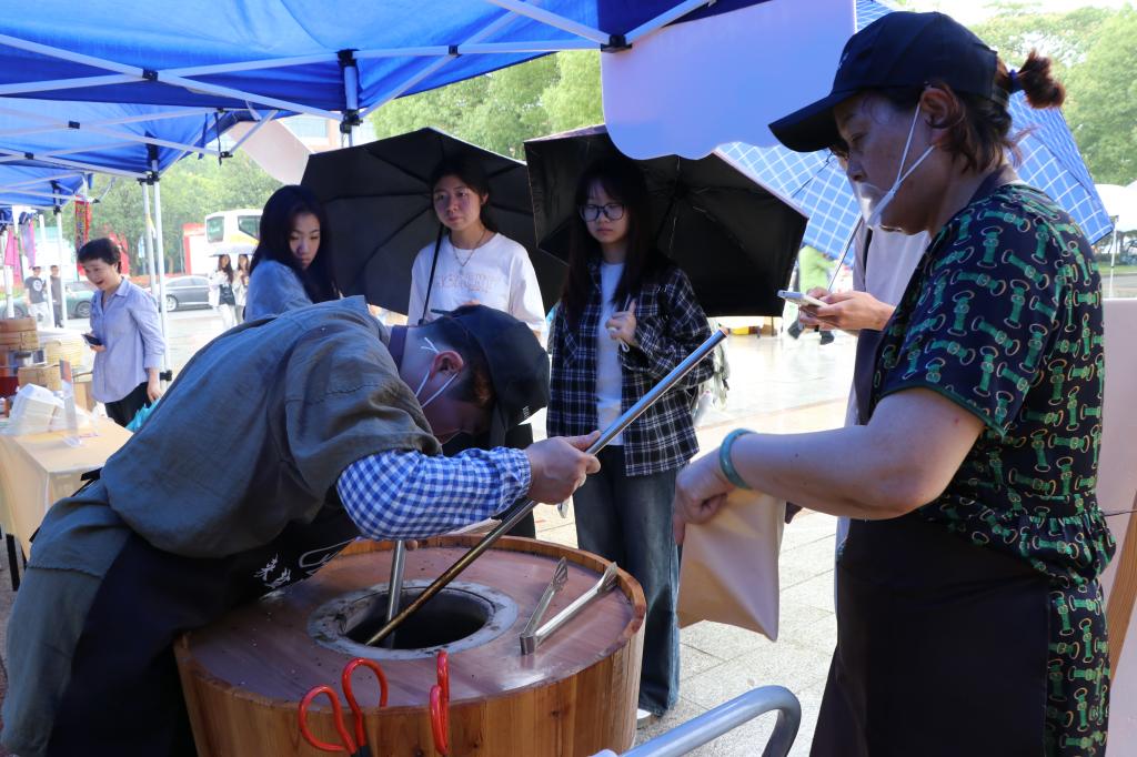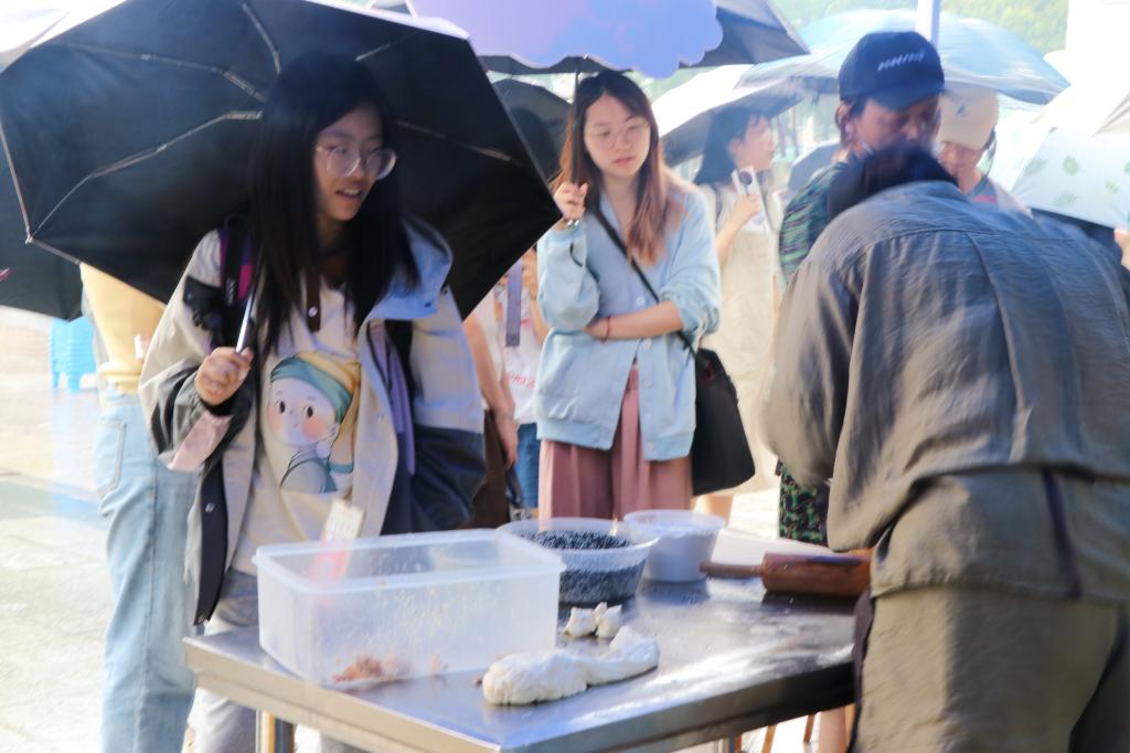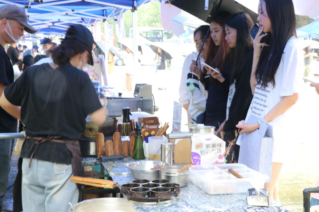 本次“潮乡盐官菜,海宁一口香”活动受到了同学们的热烈欢迎。活动在我校小广场线下举行,按照相关安排设置了近三十个摊位,受邀的主要包括汪菜制品摊位、紫苏制品摊位、盐官特色摊位、新业态网红产品摊位和就业咨询摊位。汪菜烧麦、汪菜烧饼热气腾腾、香气扑鼻;紫苏凉粉、紫苏饮多元素结合,突显紫苏独特魅力;梅花糕、雪花冰新旧文化碰撞、各具特色;丰兴编织、紫苏香囊承载古今文化、别具一格……