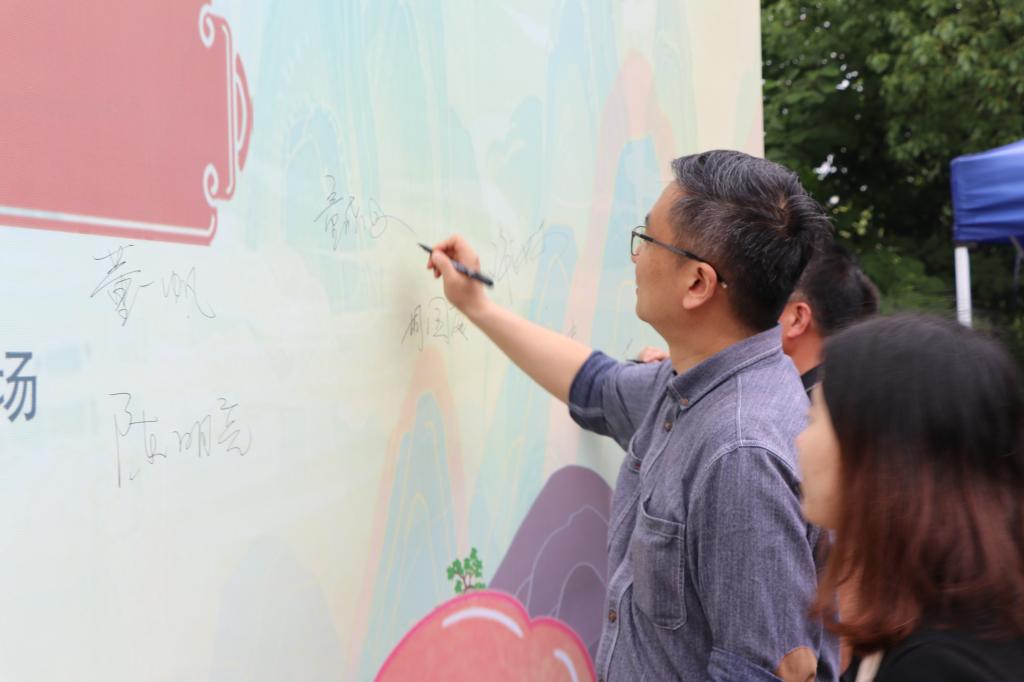 开幕式最后,教师代表和学生代表上台签字,共同在这块海报上留下自己的名字,同时留下对这场活动最美好的祝愿,并合影留念。