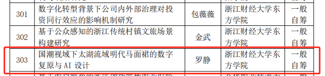 近日,2025年度浙江省哲学社会科学规划常规课题立项名单已公示结束,我院教师罗静课题《国潮视域下太湖流域明代马面裙的数字复原与AI设计》获青年基金项目。