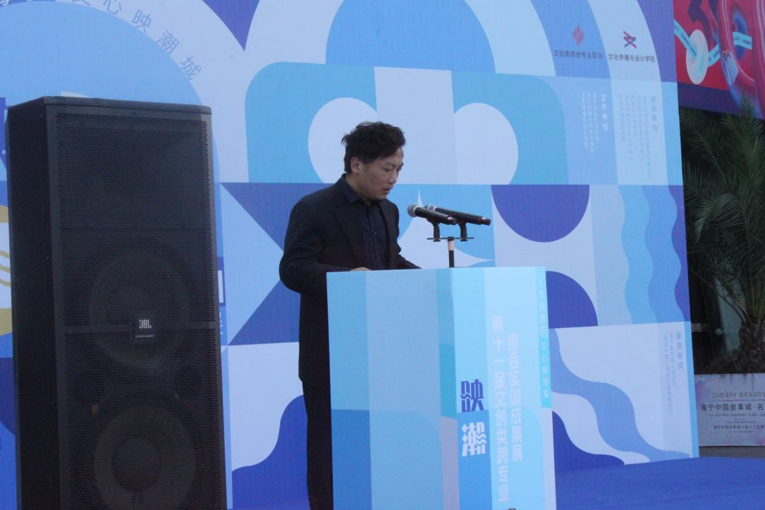 作为此次实训展的负责人,文设学院高扬老师简要介绍了展览筹备过程及三大板块内容:展现海宁本土项目灵感与动力的“潮动”板块、呈现海宁文化与其他专业交融的“潮涌”板块、拓展视野至更广阔领域的“潮展”板块。他感谢所有参与实训的师生,并期待此次展览成为校地合作、产教融合的典范。