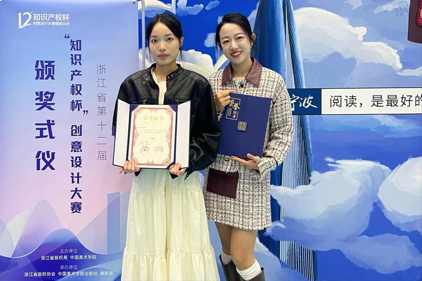 10月25日下午,浙江省第十二届“知识产权杯”创意设计大赛颁奖仪式在宁波国际会展中心举行。本次大赛由浙江省版权局和中国美术学院联合主办,浙江省版权协会与中国美术学院出版社承办,各设区市新闻出版局(版权局)及浙江版权服务中心协办,大赛主题为“创意扬帆 版权护航”,吸引了来自全省高校的众多在校生参赛。大赛收到来自省内66所高校报送的3851件参赛作品,其中我院共报送120余件作品,获一等奖1件、优秀奖5件,视觉传达设计专业的虞璐荣获优秀指导老师,充分彰显了我院在文化创意领域的雄厚实力与无限潜力。