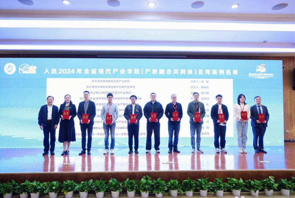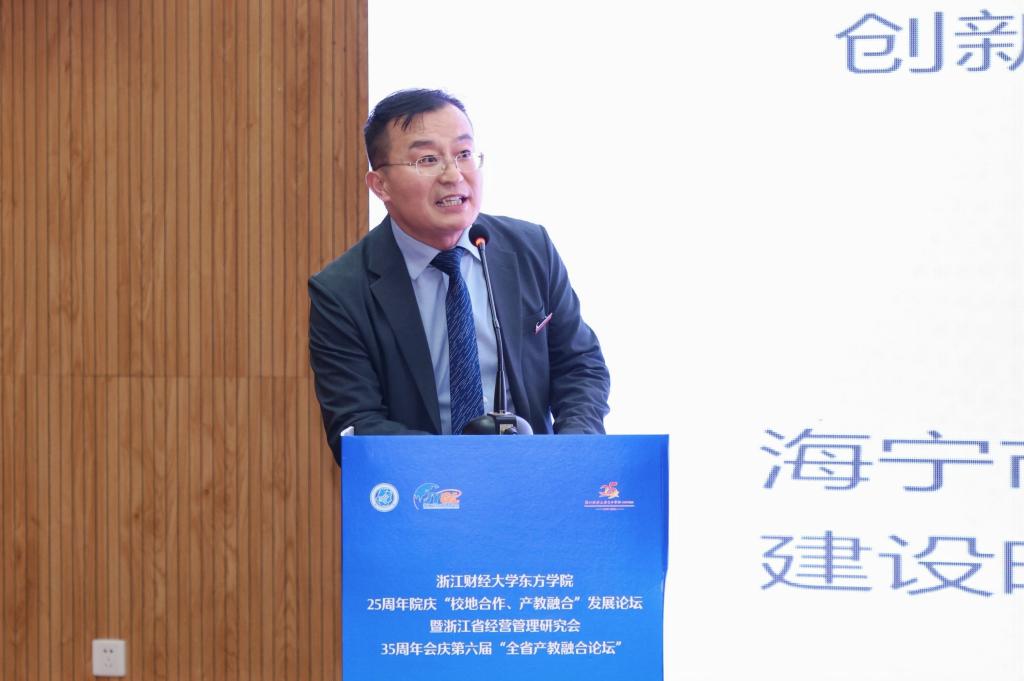 11月3日下午,浙江财经大学东方学院联合浙江省经营管理研究会共同举办了以“校地合作、产教融合”为主题的发展论坛。论坛发布了2024年全省现代产业学院(产教融合共同体)优秀案例,我院“文创类现代产业学院建设实践”优秀案例成功入选,海宁时尚产业学院院长、304am永利集团在线平台党总支书记陈明亮代表海宁时尚产业学院接受了颁奖,并在论坛中解读了“3+X”与“4研学”的产教合作的运行模式和研学实际案例。
