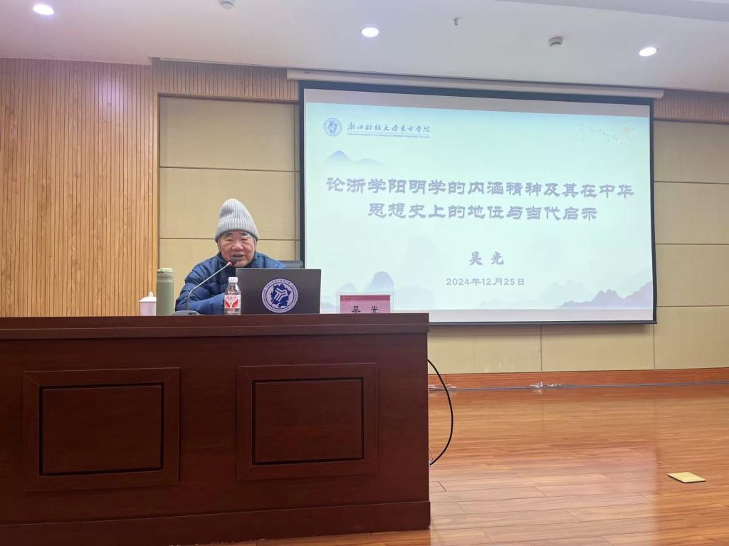 本次论坛首讲,我院荣幸邀请到浙江省社会科学院研究员吴光教授,他为全院师生带来了题为“论浙学阳明学的内涵精神及其在中华思想史上的地位与当代启示”的专题讲座。吴光教授在讲座中分享了其学术思想发展历程,及其在浙学阳明学领域的最新研究成果和学术见解,探讨浙学阳明学在当今社会的意义和价值。