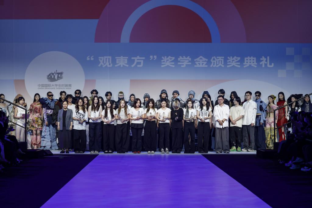 发布秀现场还举行了“观東方奖学金”颁奖典礼。该奖学金由观東方品牌赞助并授权浙江财经大学教育基金设立,旨在鼓励学生开拓创新,践行博雅精神,传承东方文化,赋能时尚产业发展。经过评审,10名优秀毕业生获此殊荣。