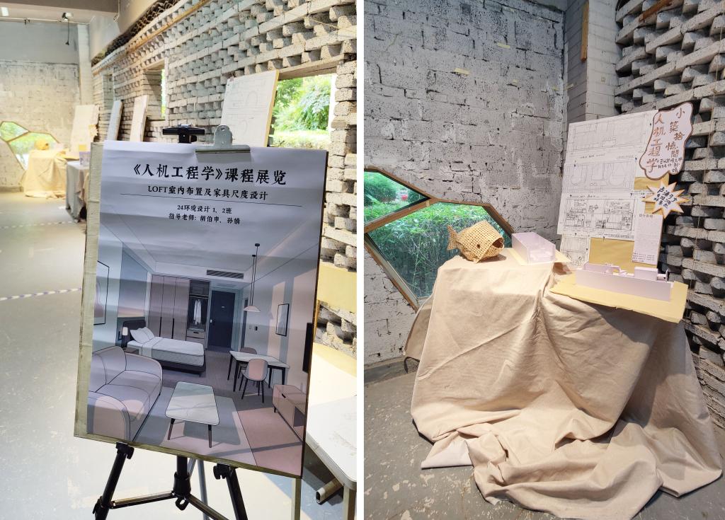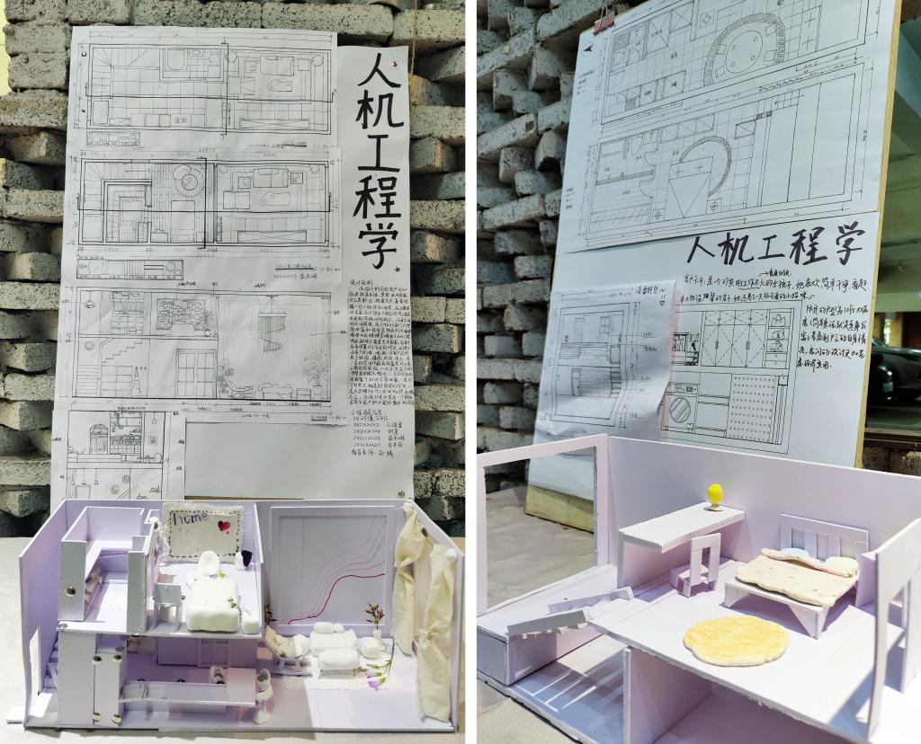 5月28日,文设一楼展厅内展出了由环境设计系教师孙婧和胡伯申指导的,由24级环境设计专业的同学们完成的《人机工程学》课程期末作业,包含了手绘设计图纸与手工模型。《人机工程学》课程结合了人体工程学与家居设计的相关知识,通过课程的三个实践阶段设置,让学生分步进入不同尺度环境的设计实践中,引导学生具备人性化设计理念和科学的数据尺度应用能力。