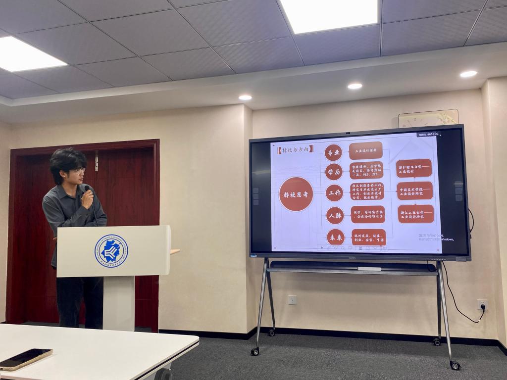 2025年6月3日下午15:50,一场干货满满的考研经验分享会在浙江财经大学东方学院学术中心多功能会议室成功举办。本次分享会由工业设计系王芳老师主持,并邀请到今年成功考入中国美术学院、浙江工业大学的两位学长——2021级产品设计1班的张哲和蔡恒宇,分享了他们宝贵的备考经验。