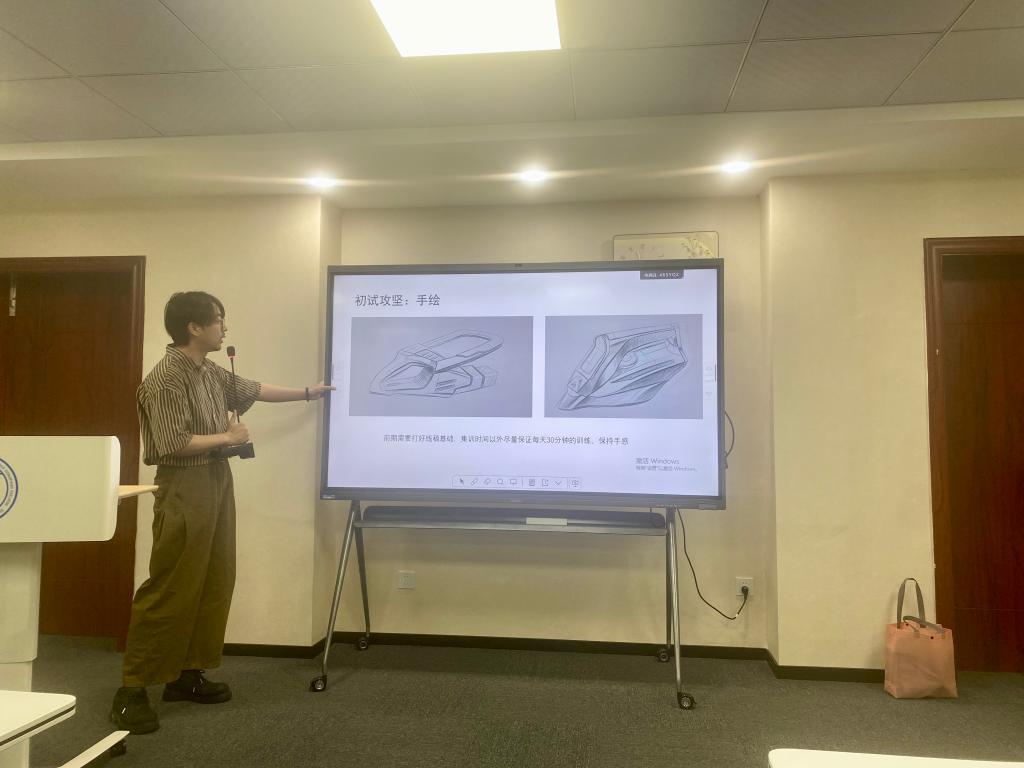 分享会进入交流环节时,学弟学妹们踊跃提问,包括“工科背景的工业设计专业学生如何提升手绘能力”和“大学阶段需要重点掌握的软件技能”等问题,两位学长结合自身学习经历给予了细致解答。